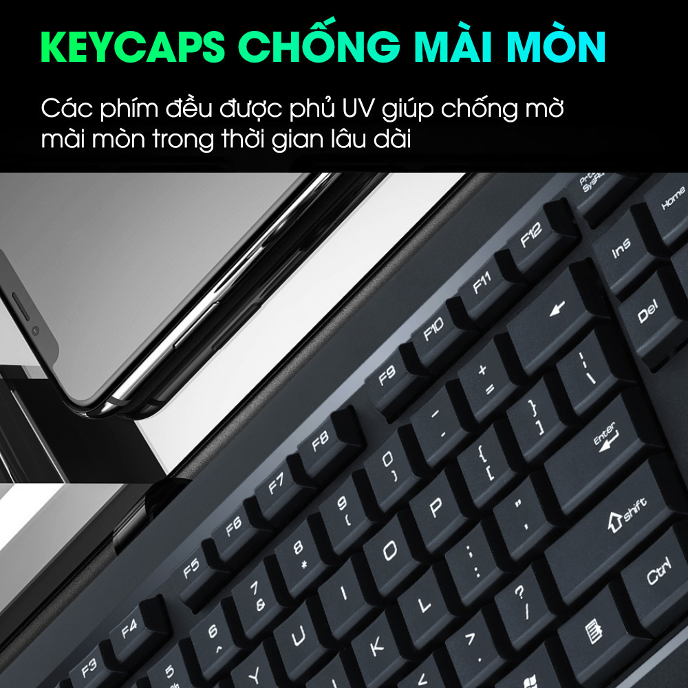 - Keycap chất lượng: Keycap ABS chống mài mòn với thiết kế lõm nhẹ, tăng cảm giác tay khi gõ và giúp cải thiện tốc độ gõ lên gấp đôi.