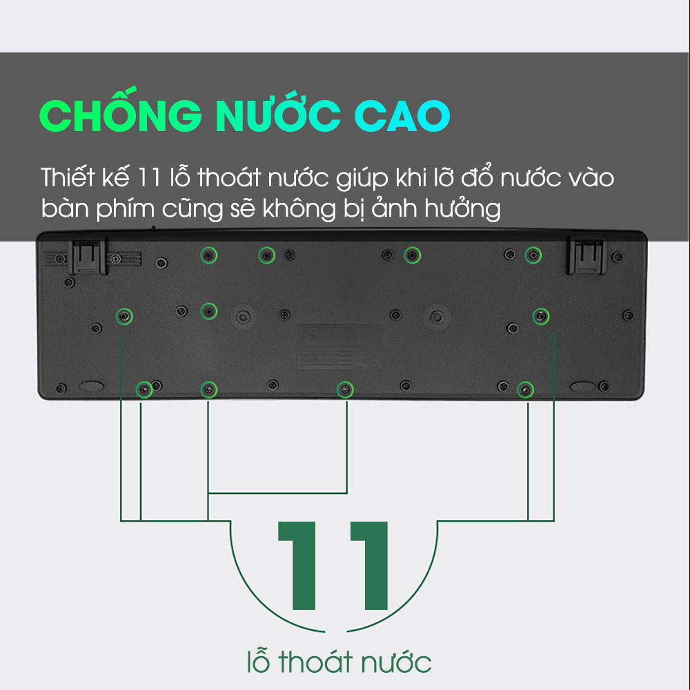 - Chống Nước Vượt Trội: Bàn phím có khả năng chống nước tốt, an tâm sử dụng ngay cả khi đổ nước hoặc cà phê.