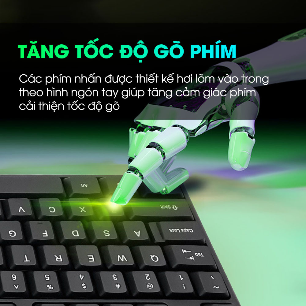 - Keycap Chống Mòn, Thiết Kế Ergonomic: Keycap nhựa ABS chống mòn, thiết kế lõm nhẹ ở giữa, giúp tăng tốc độ gõ và giảm mỏi tay khi sử dụng lâu.