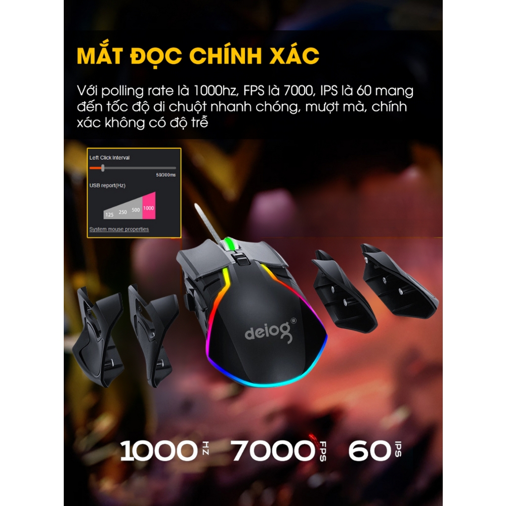 Chuột Gaming Chính Hãng DEIOG G10 – DPI 4000, LED RGB, Tính Năng Marco, Chống Ồn, Thiết Kế Công Thái Học Cho Laptop/PC