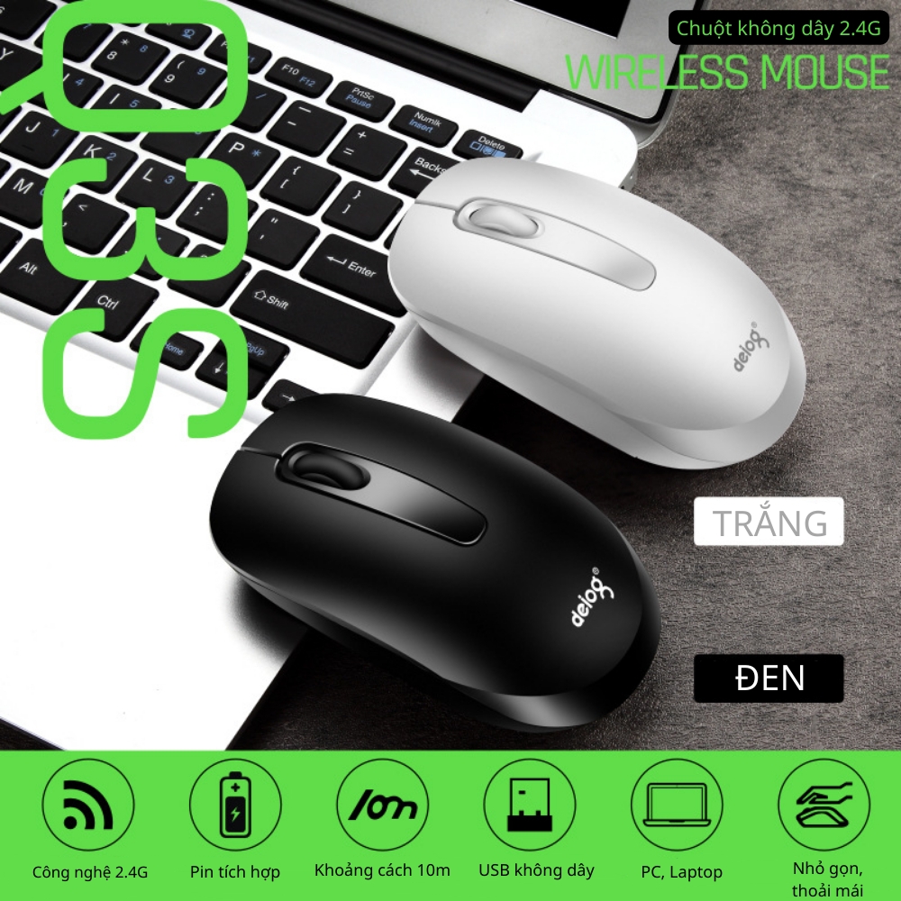Chuột Máy Tính Không Dây DEIOG Q3S - Wireless 2.4GHz, DPI 1600, Thiết Kế Nhỏ Gọn - Chính Hãng
