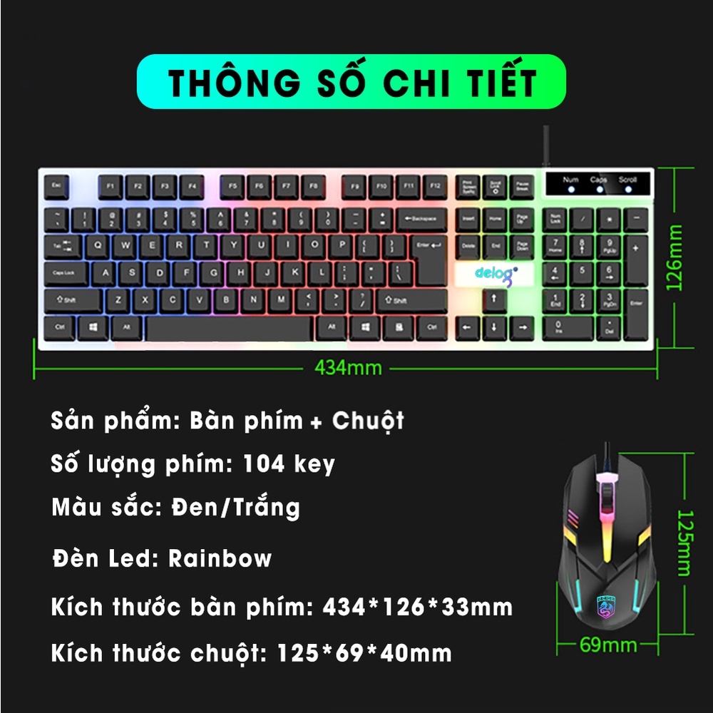 Combo Bàn Phím và Chuột Gaming LED RGB DEIOG DY815 Giả Cơ Có Dây Chống Nước - Chính Hãng