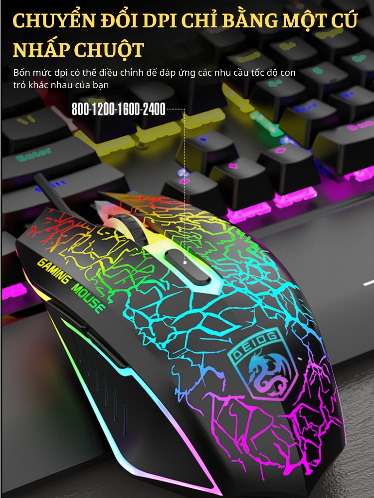 Combo Bàn Phím Chuột Gaming RGB DEIOG M115 Có Dây - Thiết Kế Độc Đáo, Chống Nước, Kèm Giá Đỡ Chống Mỏi